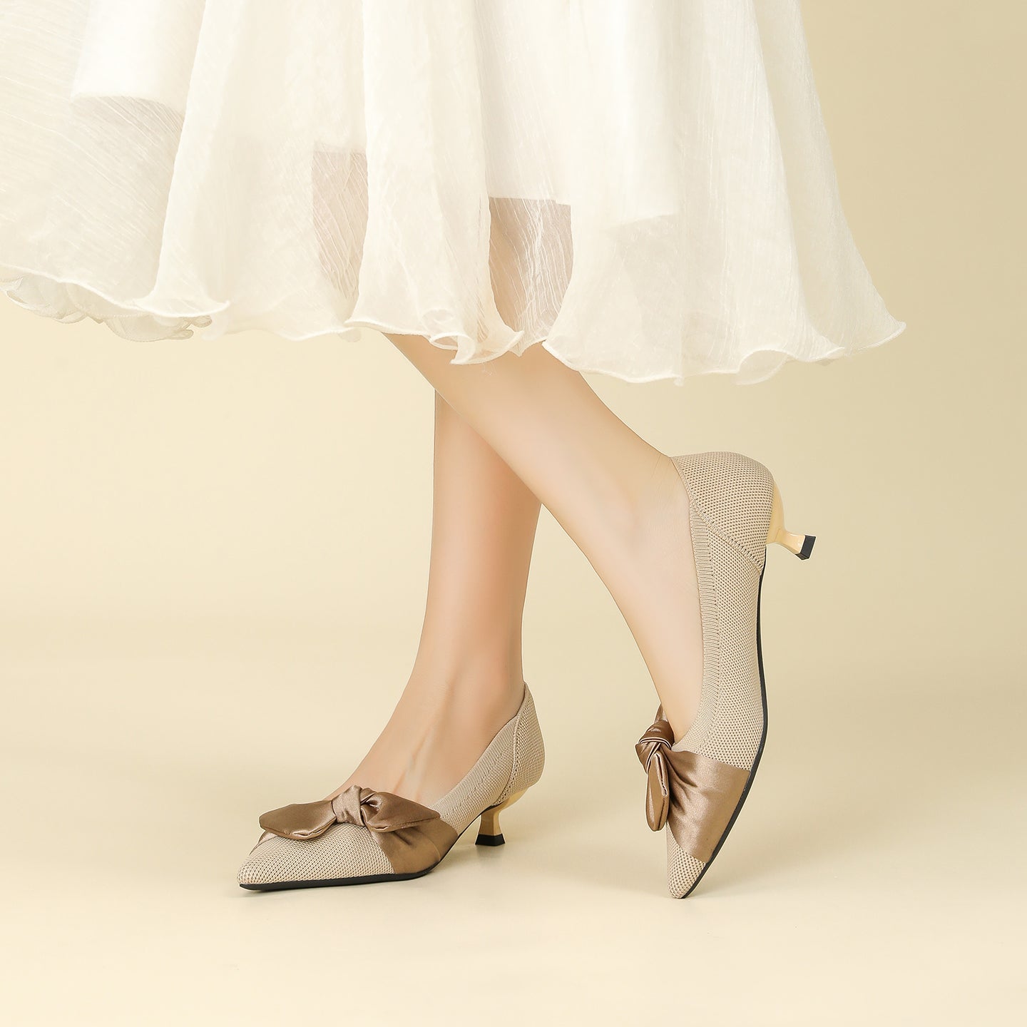 リボン付きスクエアトゥ ミドルヒールパンプス(4cmヒール)