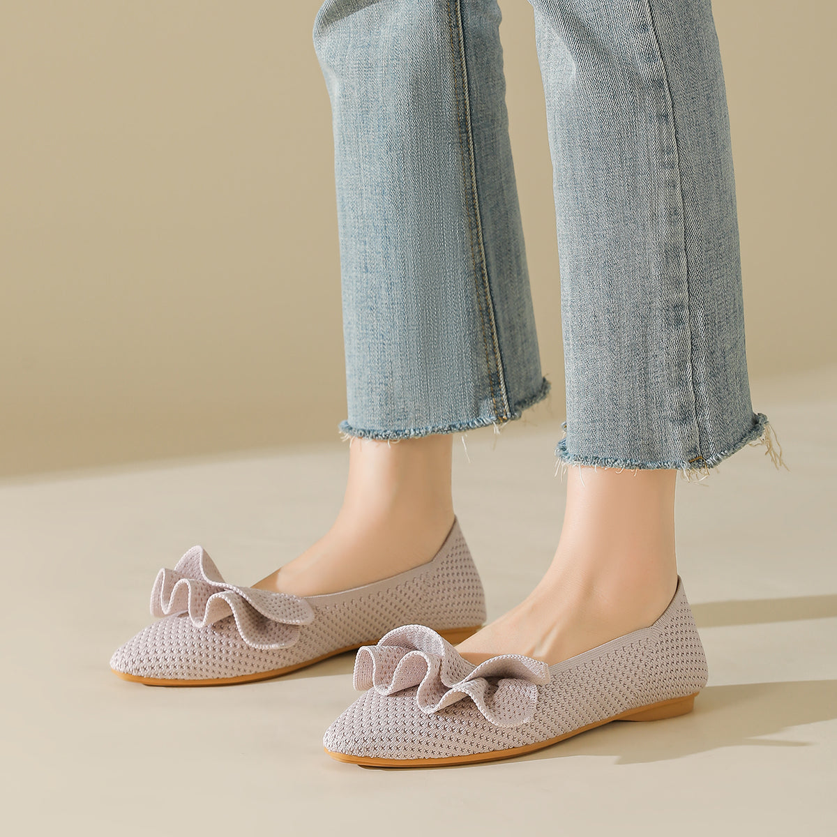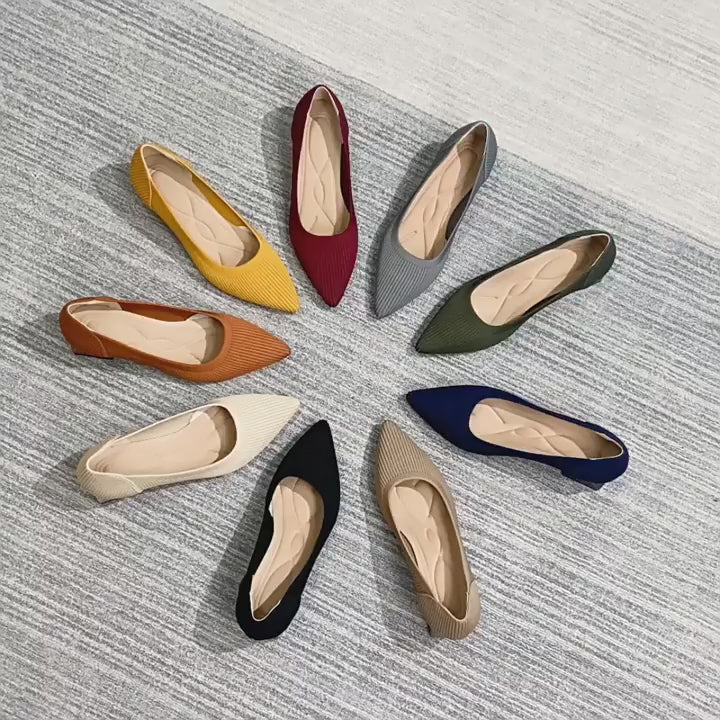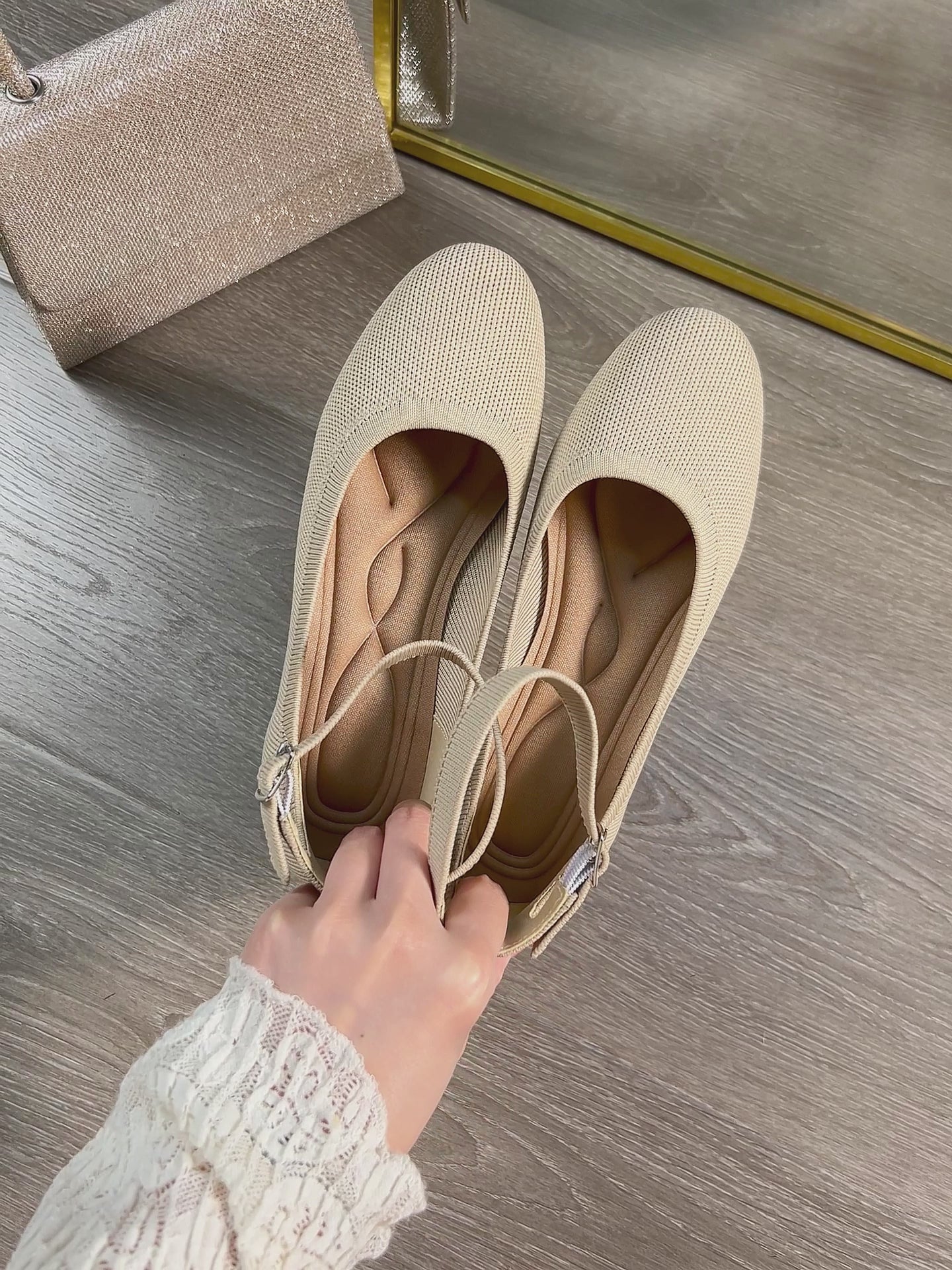 レトロニットフラットパンプス 尖頭浅口ワンストラップ