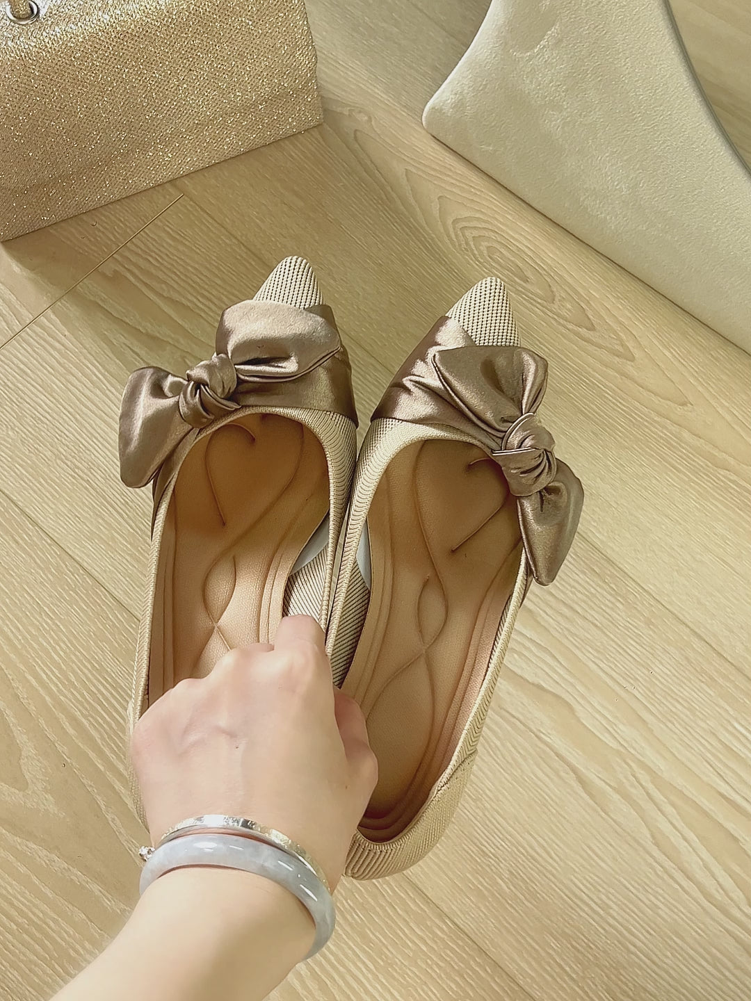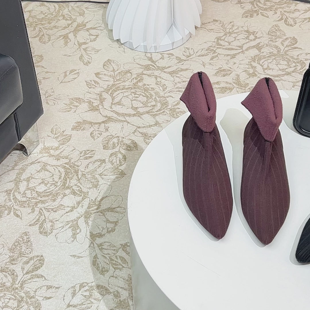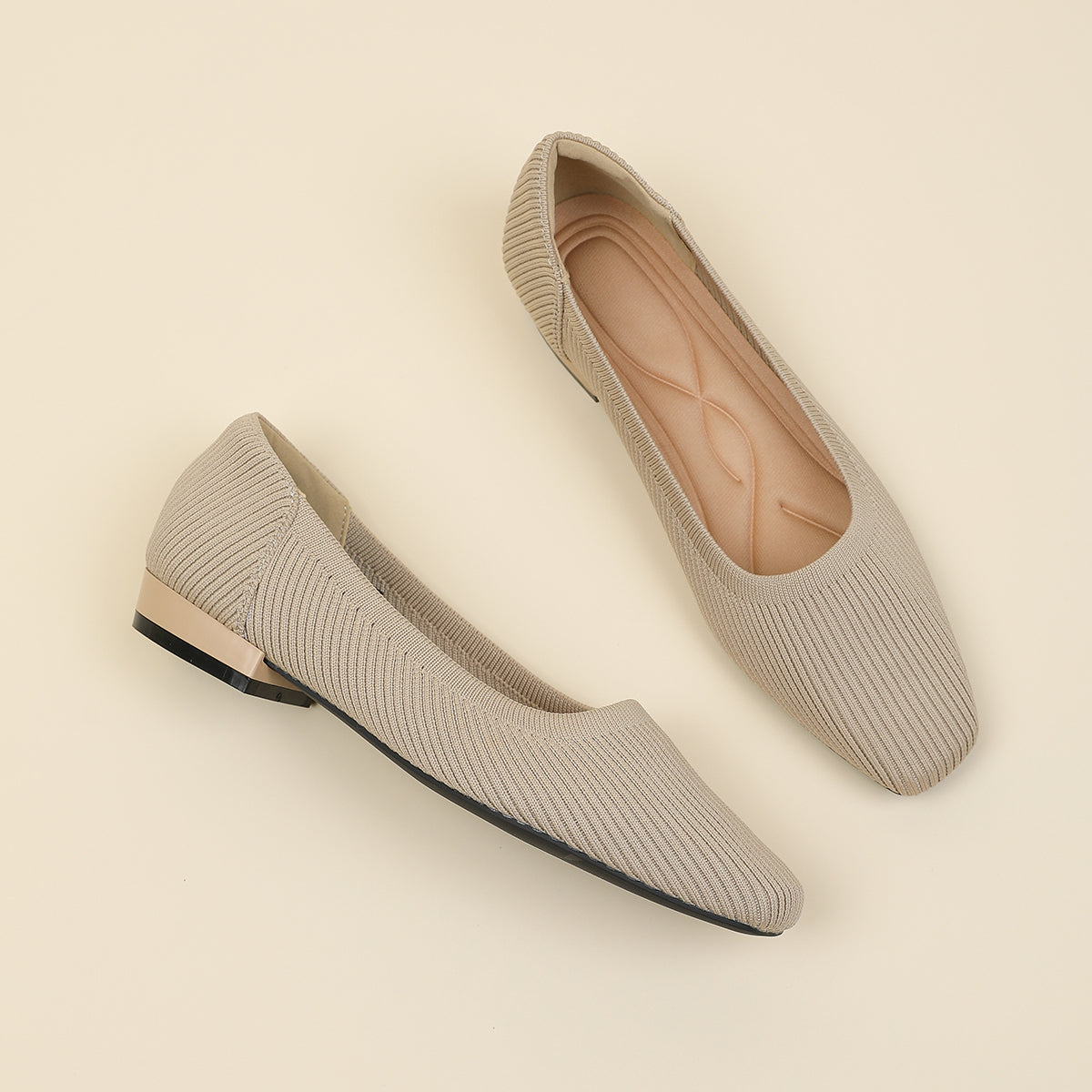 レトロニットフラットパンプス 尖頭浅口ワンストラップ