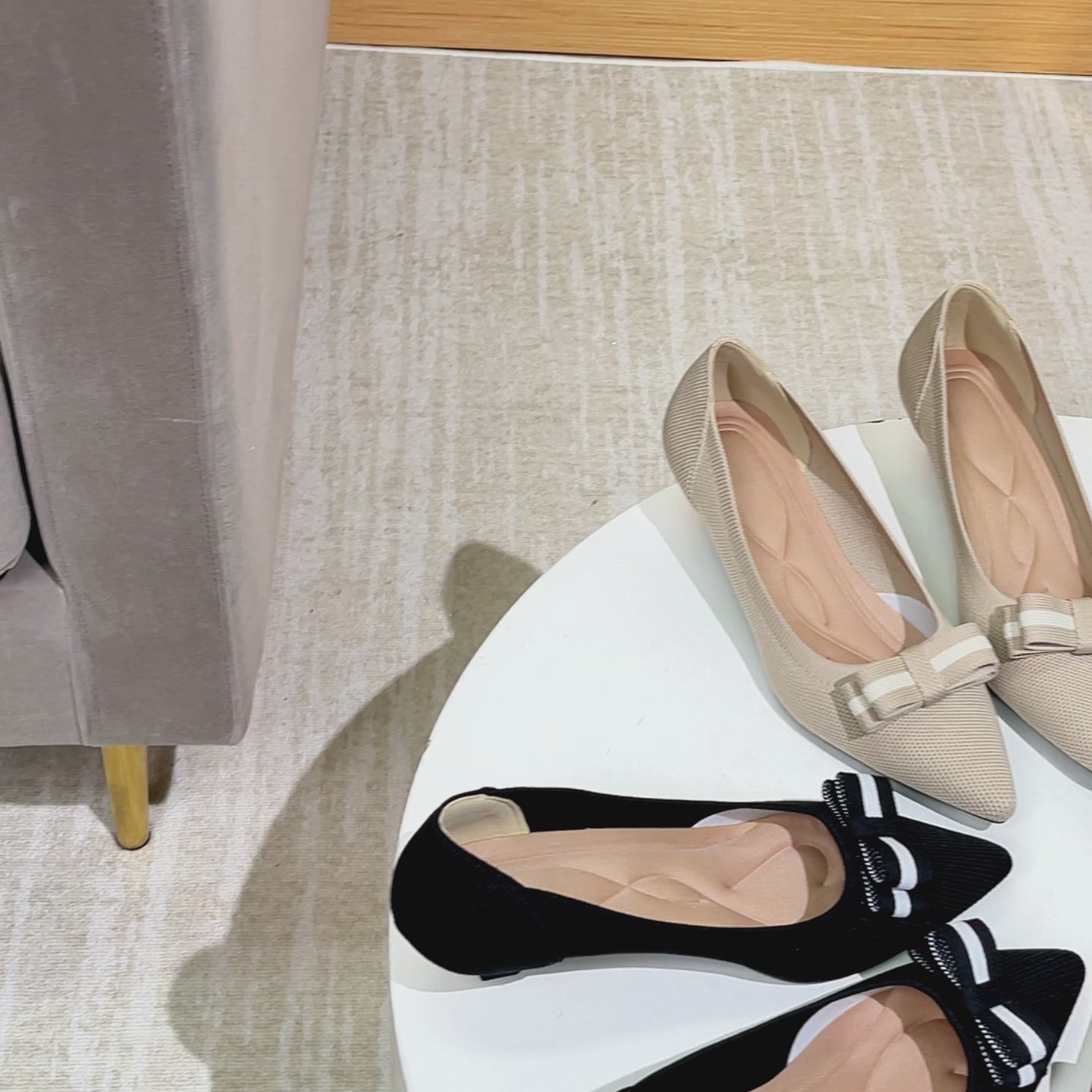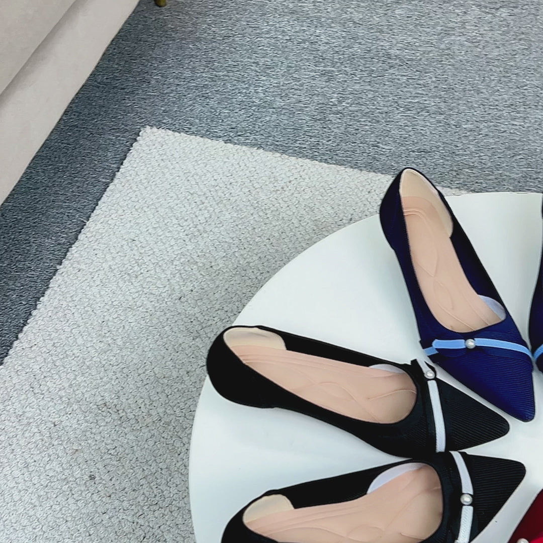 尖頭リボン付きキャットヒールシューズ