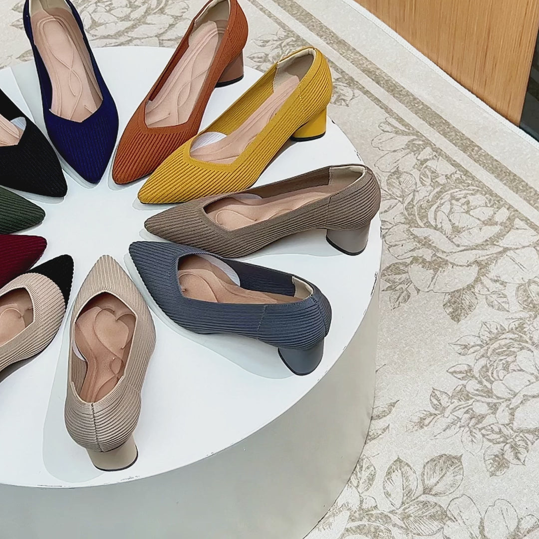 ポインテッドトゥ 浅口 ミドルチャンキーヒール シューズ