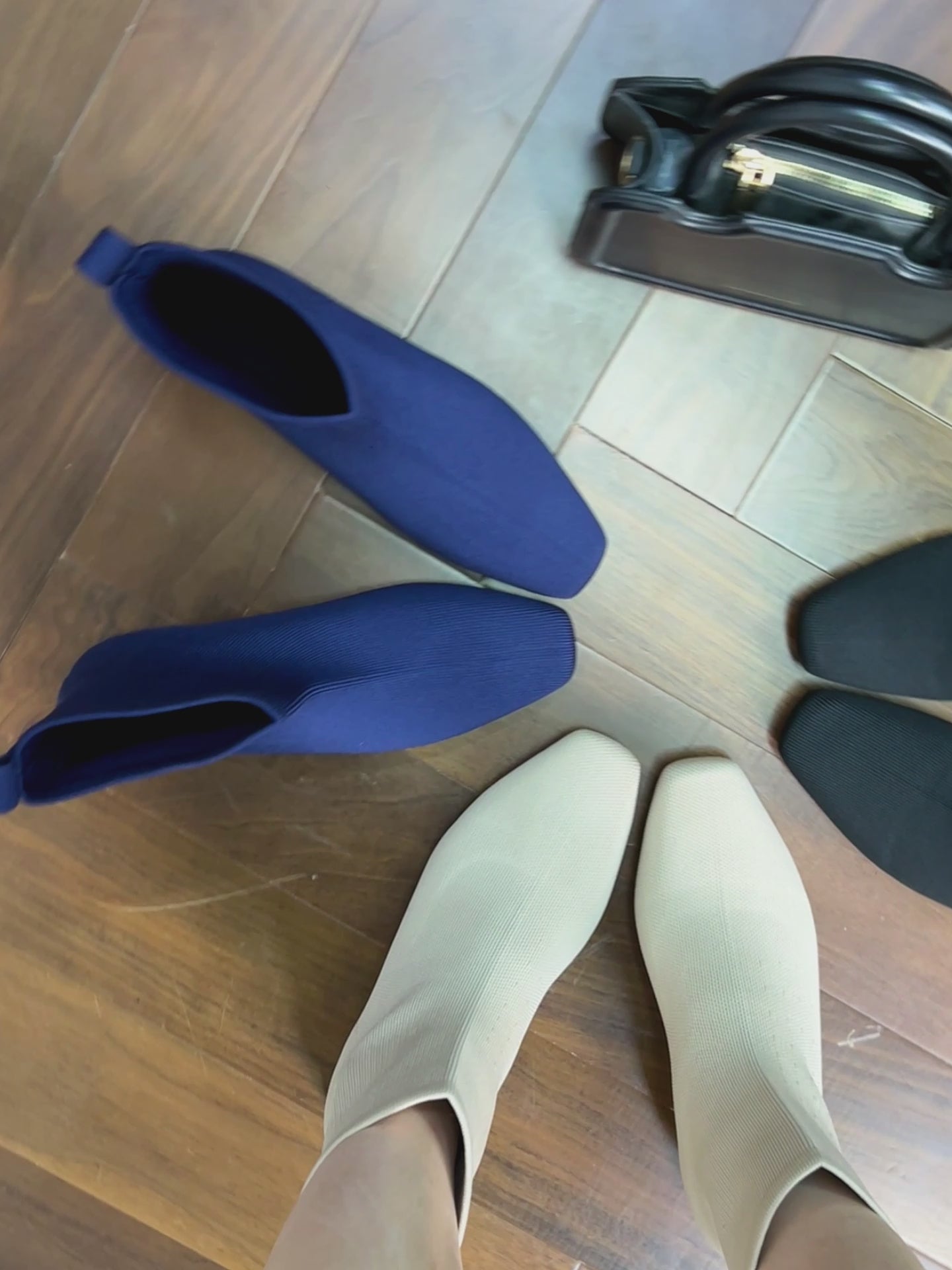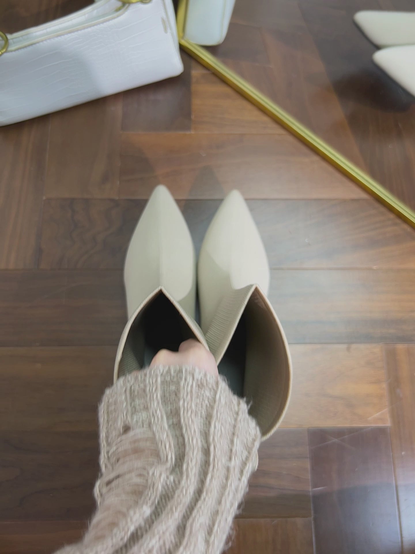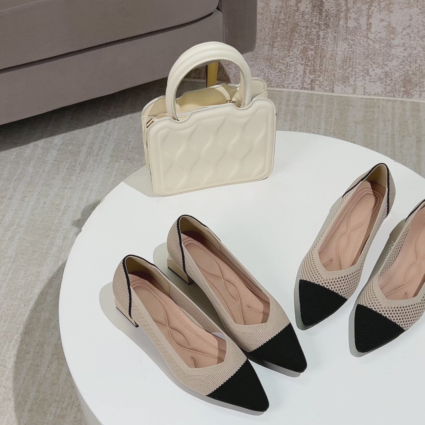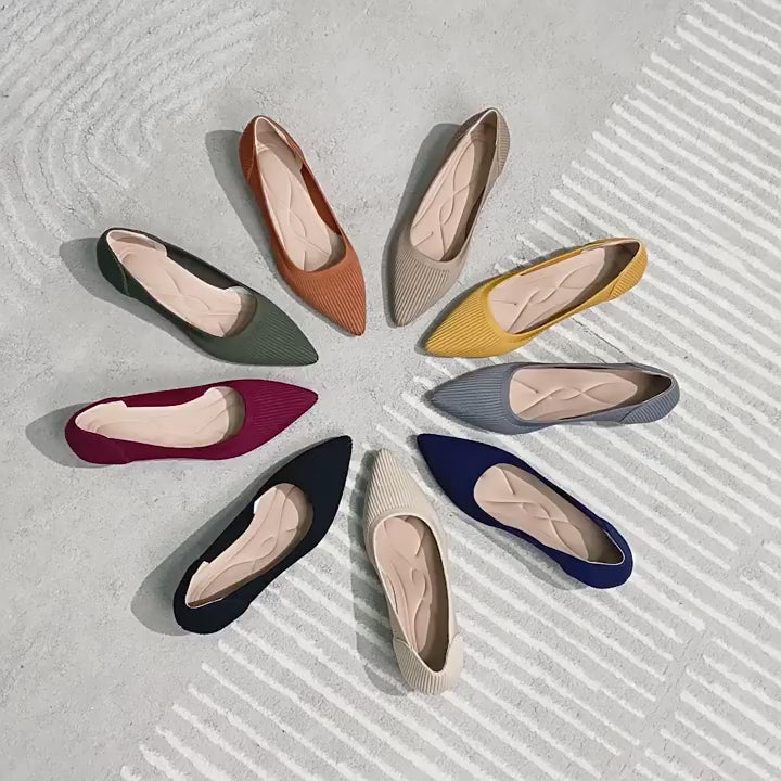 レトロニットフラットパンプス 尖頭浅口ワンストラップ