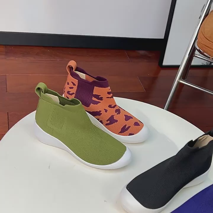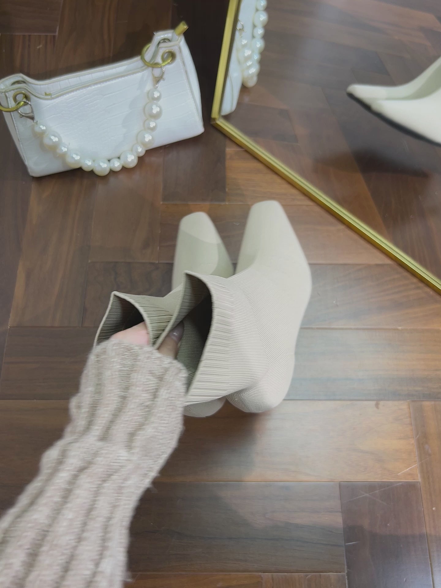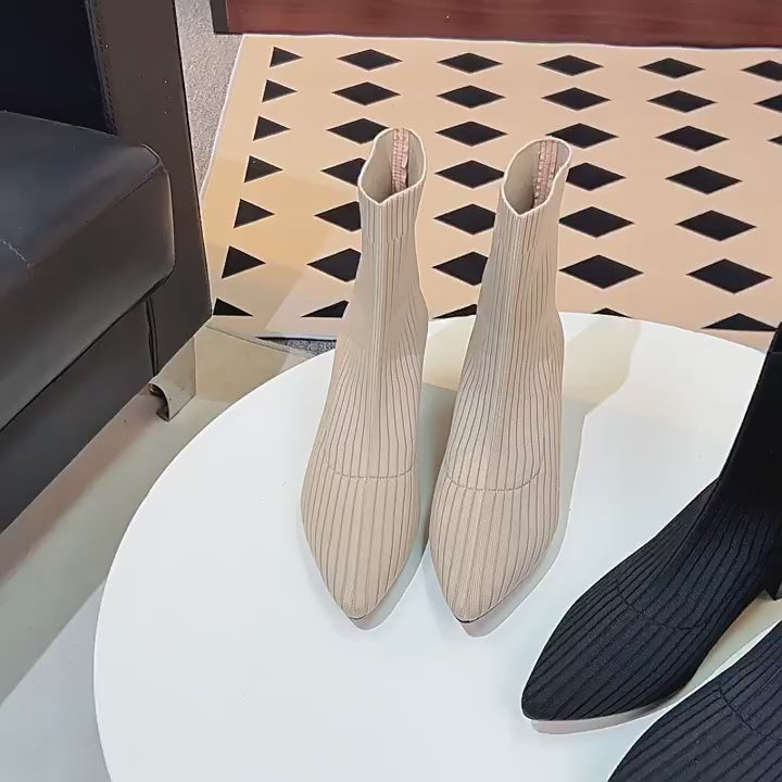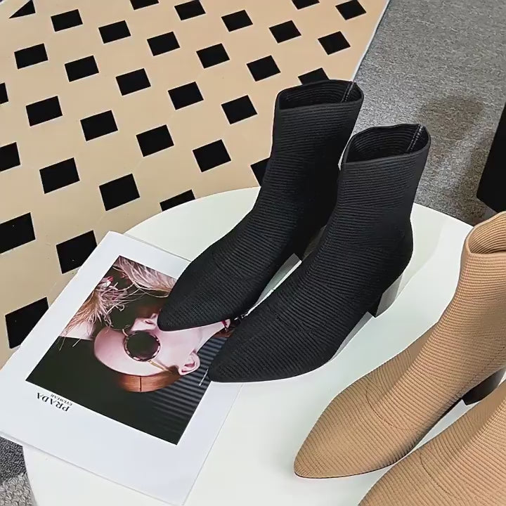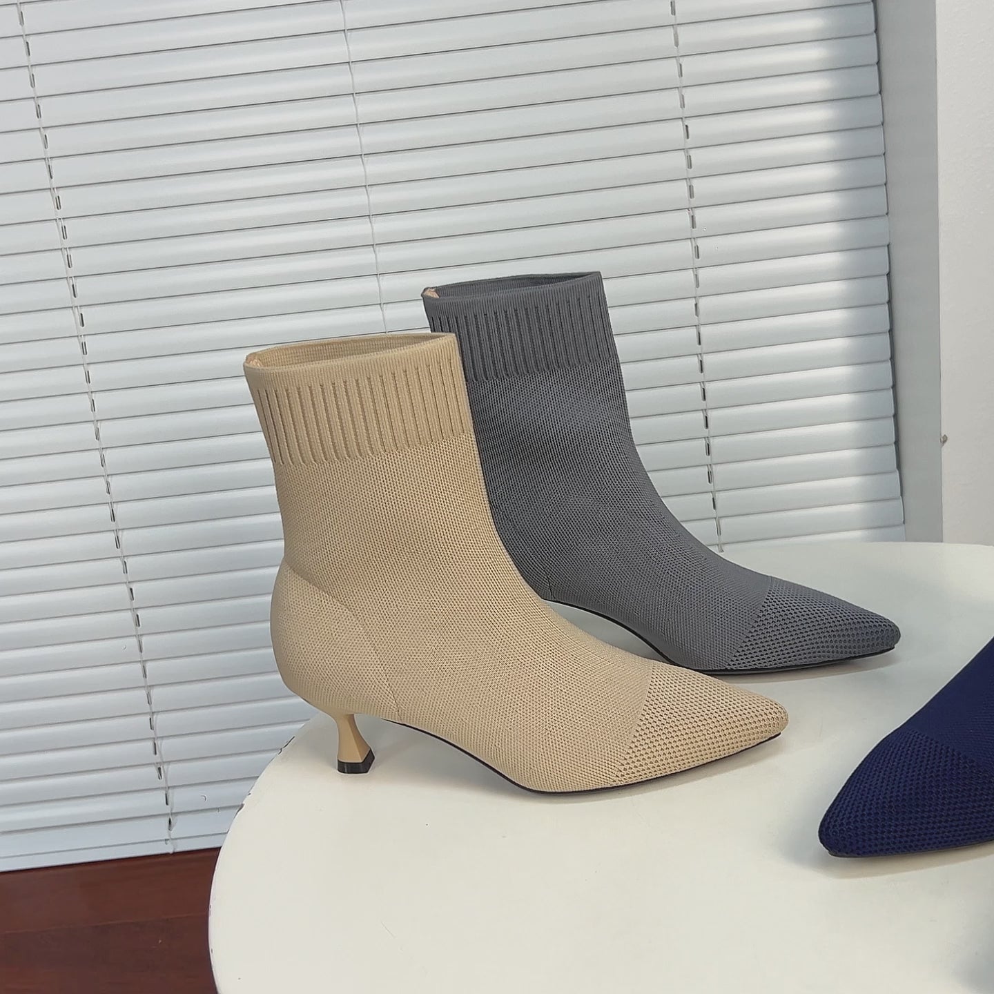 尖頭ニットソックスショートブーツ 5.5cmチャンキーヒール