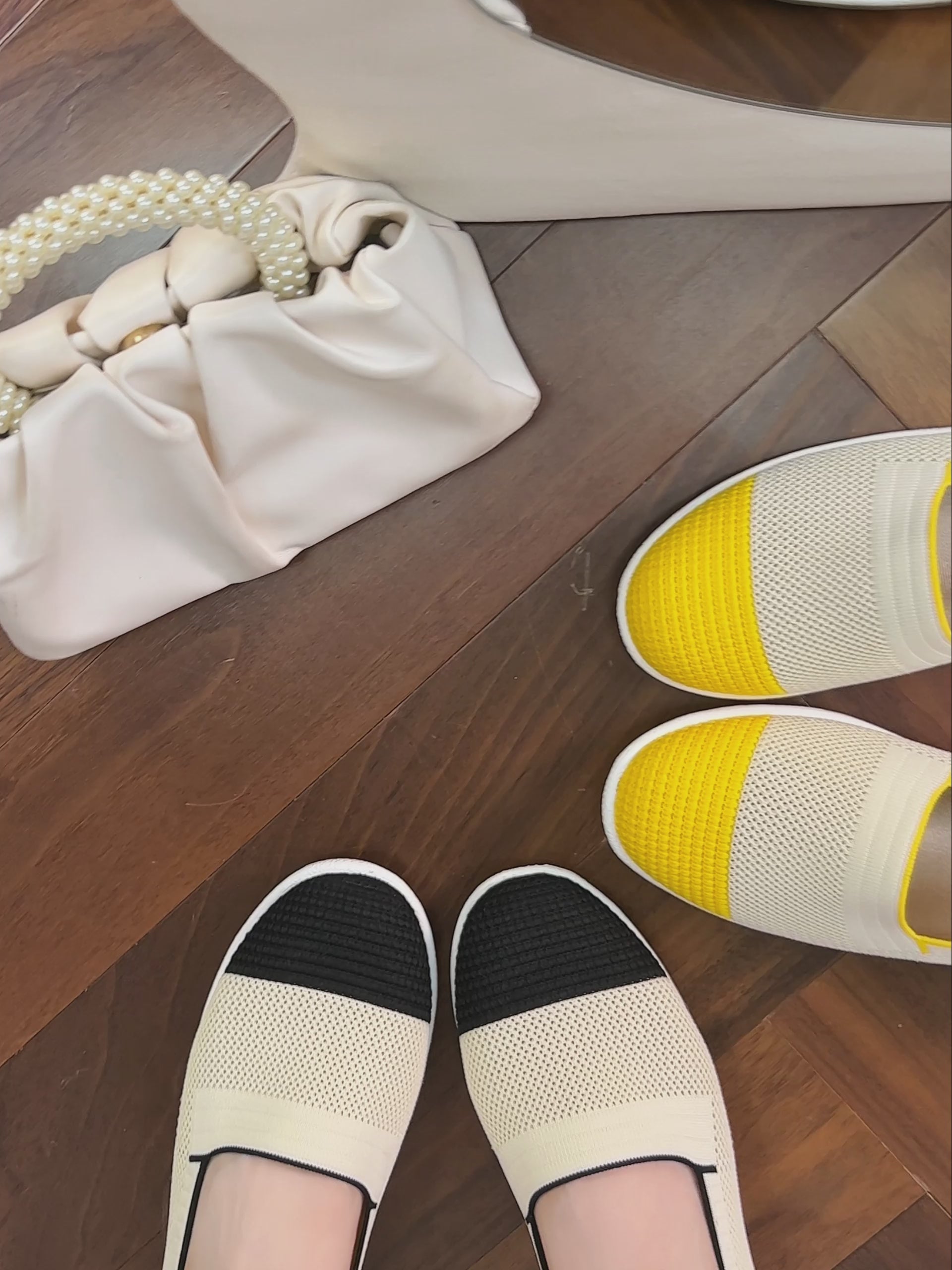 アッパーは一日中足がむくんでも伸縮し、柔らかく心地よい糸が足を優しく包み込みます。裸足で履いても快適なストレスフリーの感覚を提供します。