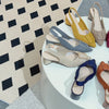 ポインテッドトゥ 浅口 太ヒールサンダル
