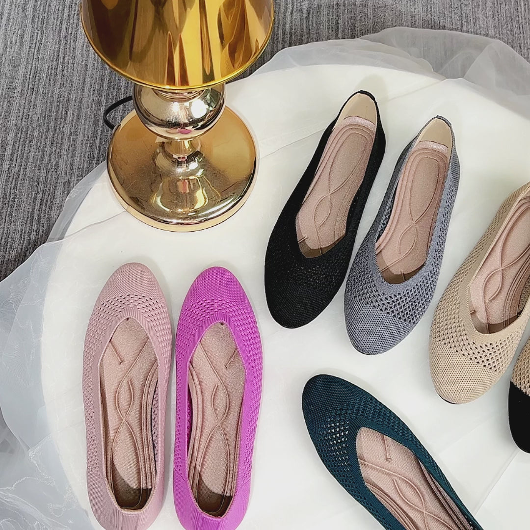 ラウンドトゥ メッシュデザイン ソフトソール フラットシューズ